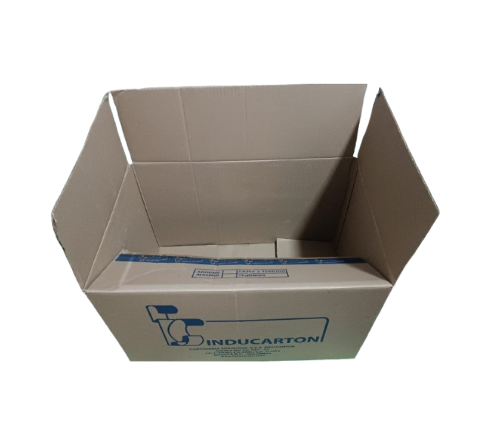Caja de carton para empaque y almacenamiento. Largo 57 cm, ancho 37 cm, alto 34 cm. Calibre: 930.